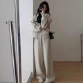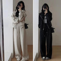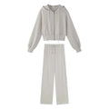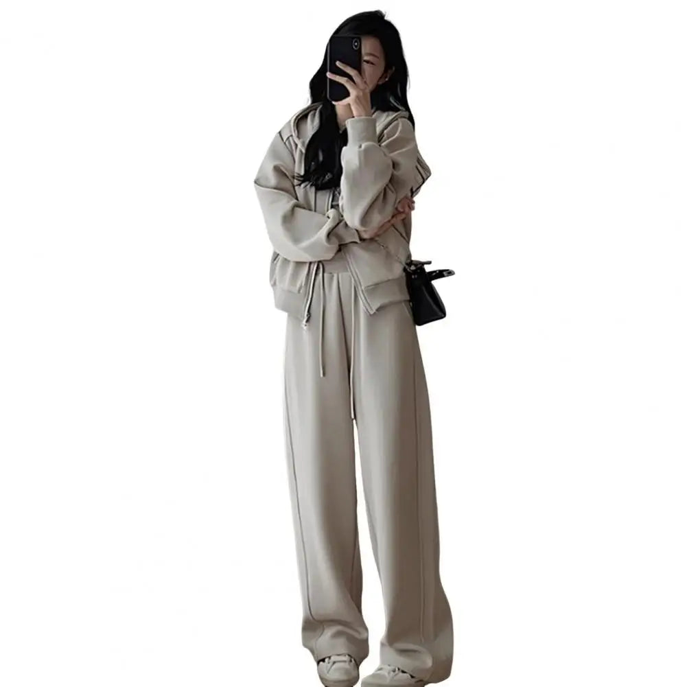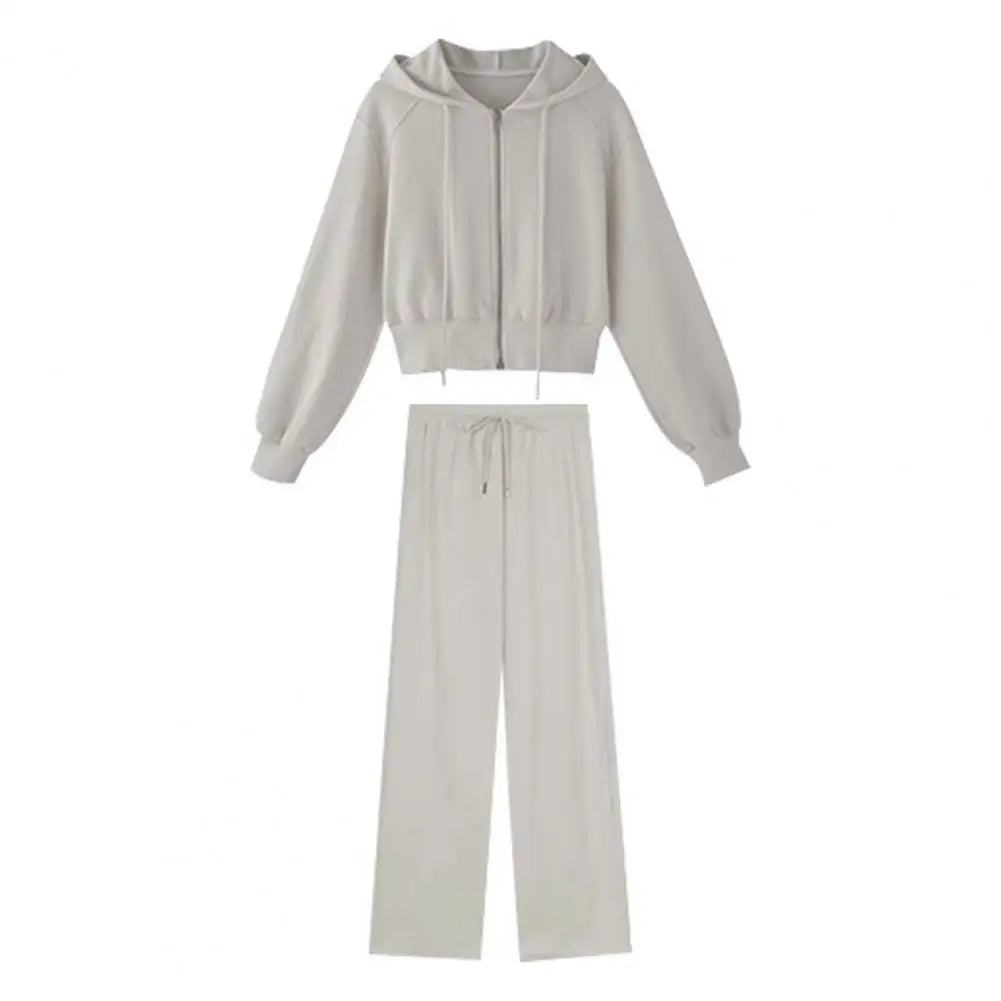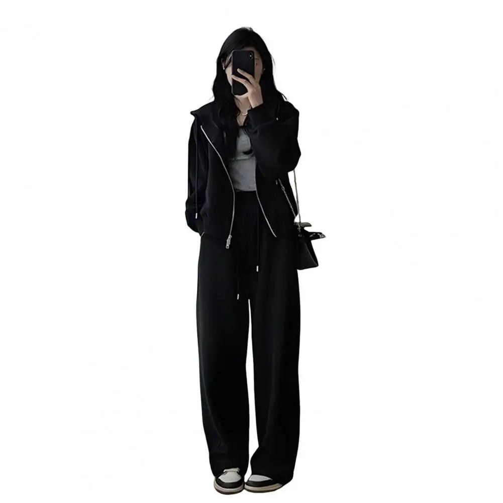 Style: Casual zip-up hooded jacket + wide-leg pants