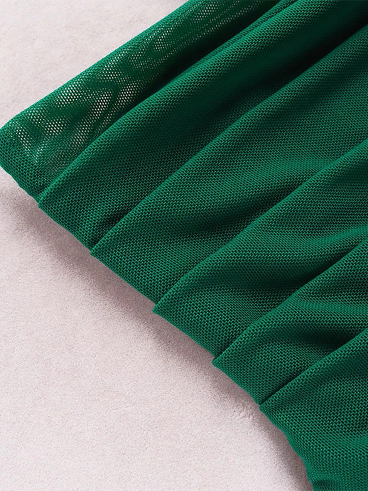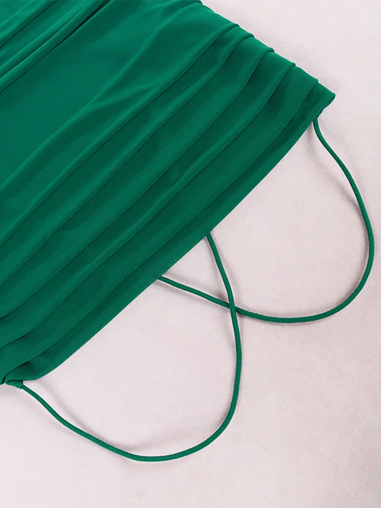 Cowl Neck Ruched Bodycon Midi Dress in Green